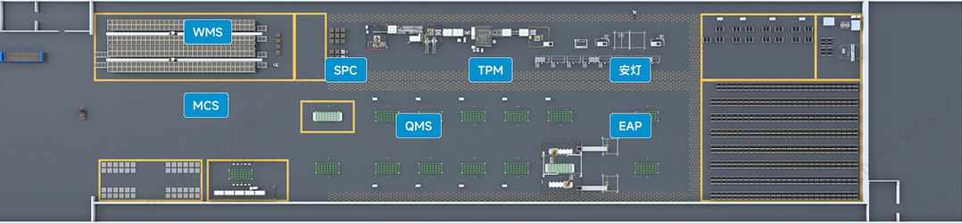 该解决方案的储能模组智能产线,通过面向制造的模块化设计, OT+IT的融合,实现了模组产线的无人化作业,一次良率高达99.5%以上,MTBF(平均无故障时间)≥12h,OEE(设备综合效率)≥90%;产线兼容50-1175Ah的市场主流电芯规格型号和1P13S、1P26S、1P52S和1P104S的模组/PACK结构。PACK产线实现了涂胶、壳体上下线、打螺丝、电性能测试和气密测试的完全自动化。集装箱装配线实现高度集成化和关键工位的全面自动化。所有这些旨在提升客户的产品品质和降低客户的全生命周期成本。
